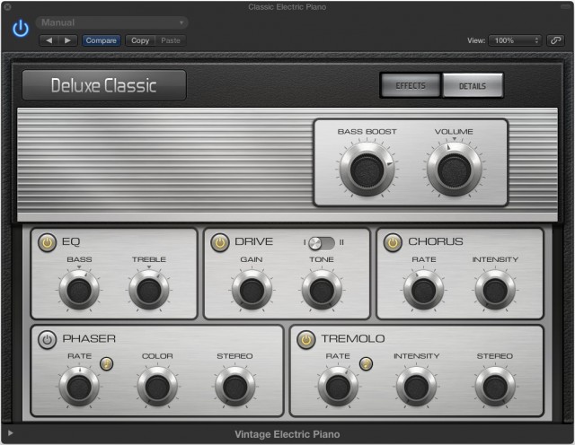 Logic 9的关注点在吉他放大和效果模拟上。Logic Pro X … 再次聚焦在吉他放大器的模拟上了(虽然不完全是——详见下文)。现在,Amp Designer终于跟Bass Amp Designer凑成一对了。