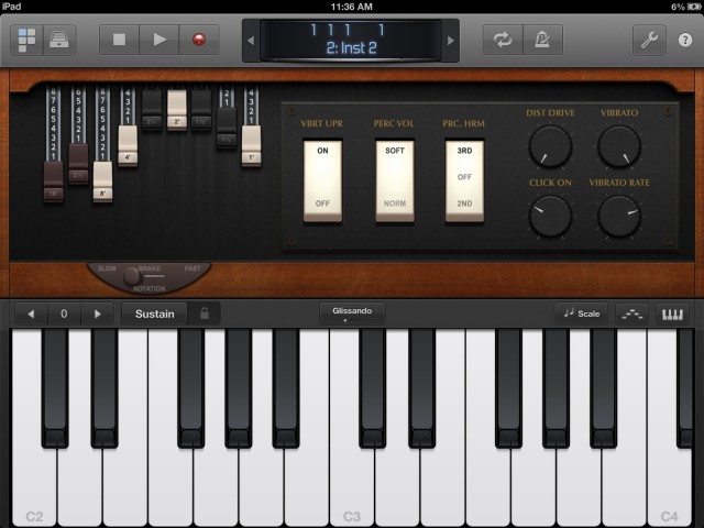 Apple增加了新的乐器。它们都相当实用,很适合放入你的军备库中。Retro Synth是一个简单的虚拟模拟合成器——值得高兴地是,它不仅是一款Minimoog风格的合成器,而且还有双操作器的FM合成和波表合成模式。还有新的电钢琴、Clav和B3乐器。在早些日子里,Emagic/Apple以高品质的乐器成为了行业的领导者,但如今它们掉队了。随着新模型的到来,它们终于又重返游戏了。乐器的声音很可爱。当然,你不仅可以使用键盘演奏,还可以使用iPad。(作为竞争者,在Ableton Live中,有相当不错的模拟键盘和合成器——虽然没有哈蒙德电子琴)。