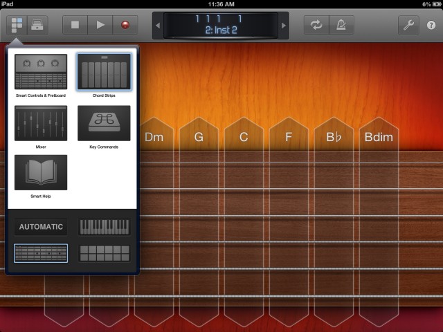 Apple做法的不同之处在于将Logic Remote与乐器进行了整合。你会得到GarageBand中的交互触碰视图,包括打击垫、钢琴按键、虚拟琴弦和和弦布局。智能控制(Smart Control)布局会自动出现。特别是使用Apple的乐器时,它会给你带来很多乐趣。通过触碰,能够立刻开启乐器和软件合成器的参数。