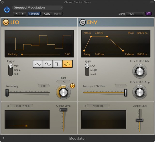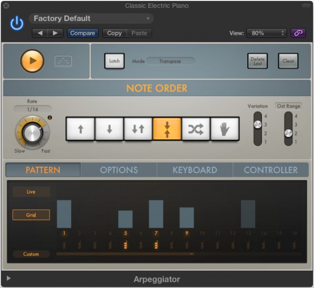 当我评测2009年最后发布的Logic 9时,我曾抱怨Apple忽略了MIDI功能。伙计,他们现在可不敢怠慢了。新的Logic有一套现场的MIDI效果器——姗姗来迟啊!这些MIDI效果在细节和性能上的水准都非常突出。例如,Arpeggiator(琶音器),可以从一个简单的琶音器转变为带有和弦触发器的多步样式生成器。