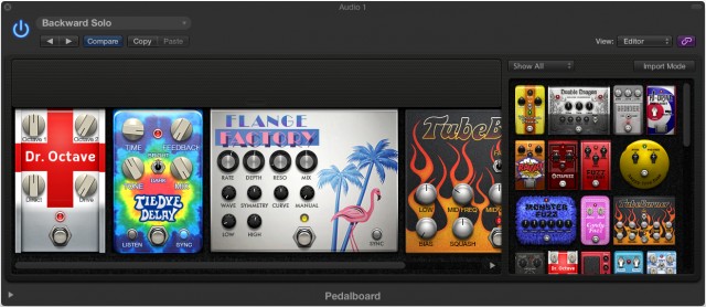 另外,它们对吉他手来说也是很实用的(其它用户应该会有别的用途)。增加了新的调音器和一堆踏板效果:(Apple的注释)“Tie Die Delay(反转延迟),Tube Burner(管道风格过载),Wham(踏板弯),Grit(经典失真),Dr. Octave(低八度强化),Flange Factory,Graphic EQ。”