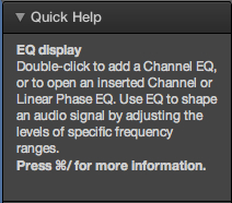 也许,最有用的新增功能是这个小东西:快速帮助(Quick Help)。它提供了所有Logic功能的交互式帮助。它表现得很好,跟Ableton Live里的快速帮助一样。当然,我们很乐意将它加入到Logic中。