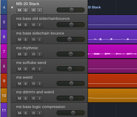 对于初级用户来说,Apple自带的很多预置都充分利用了轨道堆栈(Track Stacks),它将相当繁复的路径设置压缩起来,方便随时进行调用。这可以帮助用户迅速开始制作——当然,如果你想要做进一步的编辑,也是完全可以的。